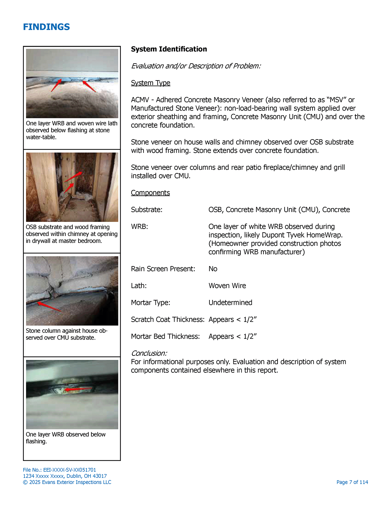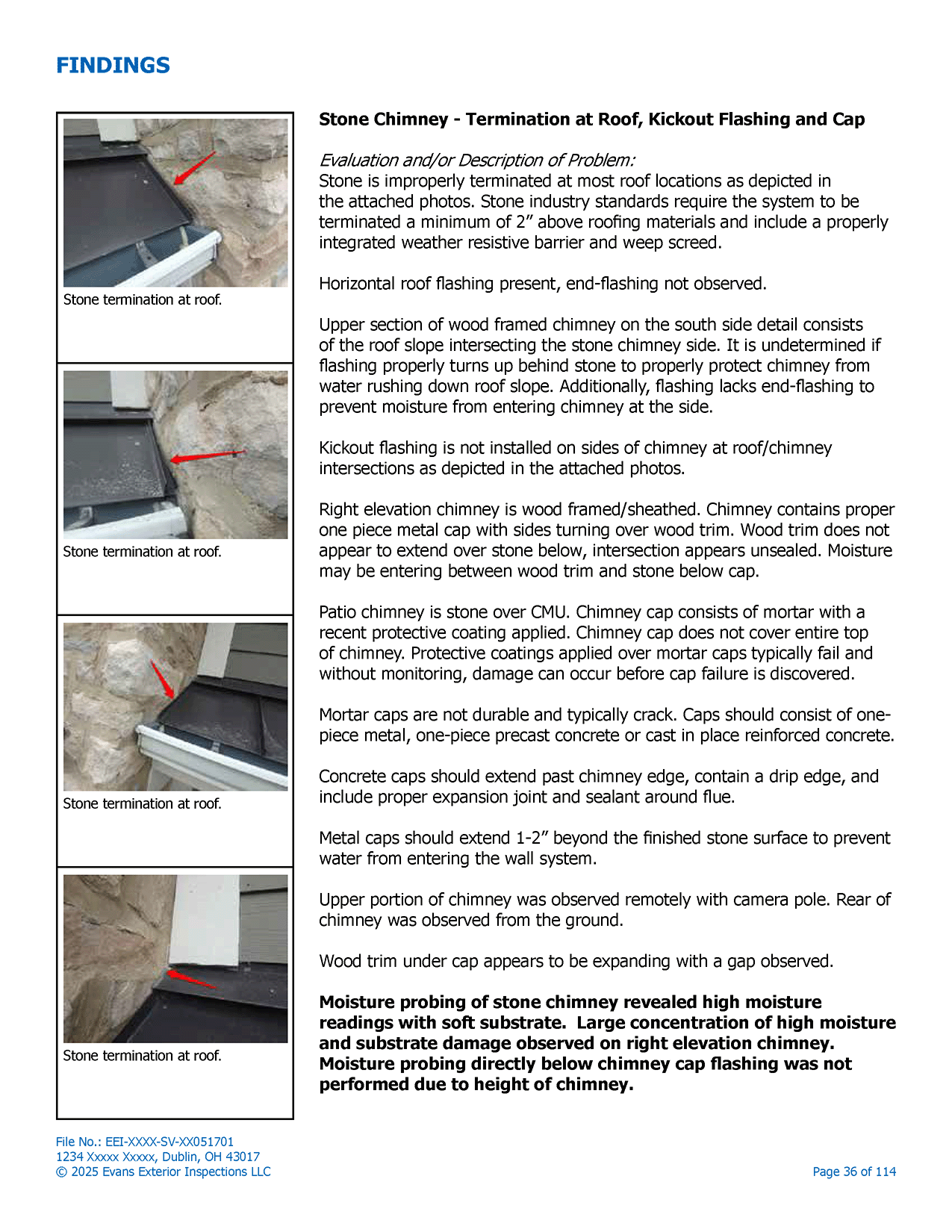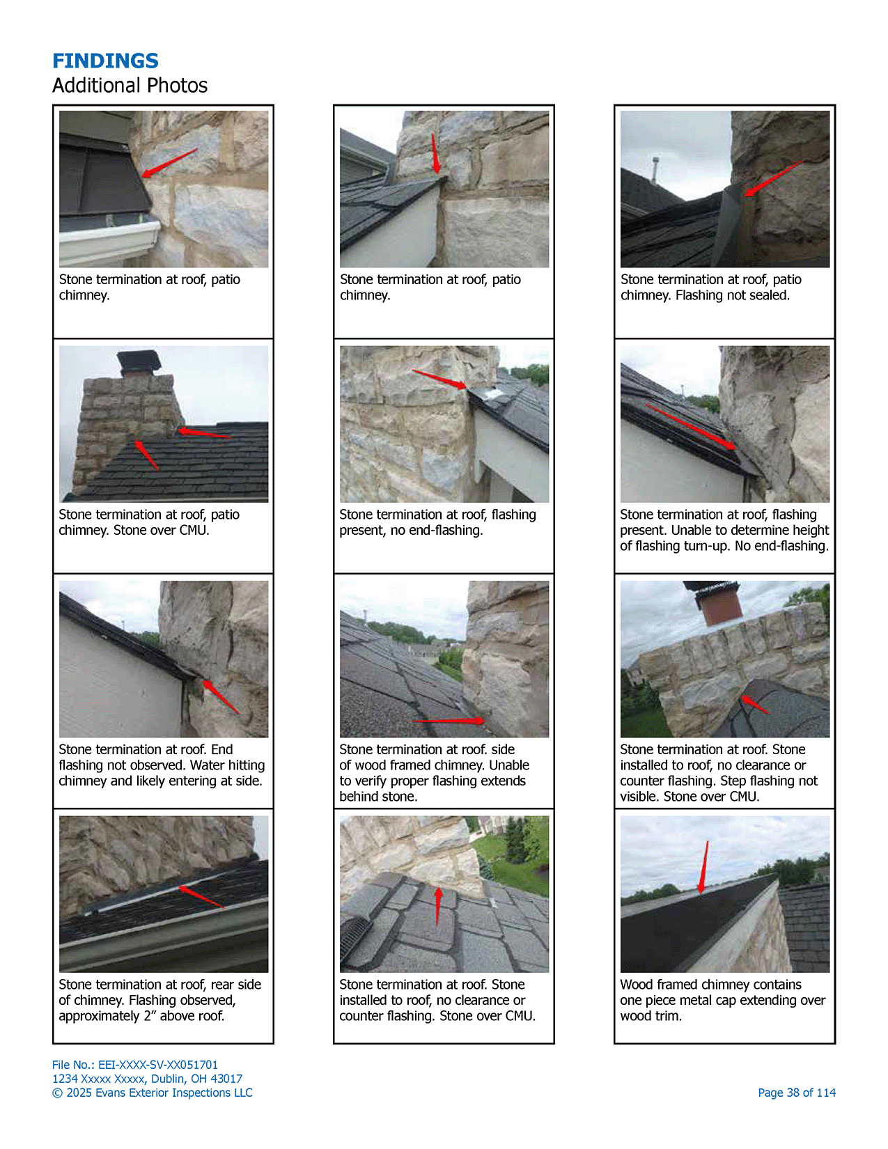 The above was taken from an actual stone veneer inspection performed for a homeowner. The name and identifying details were removed.