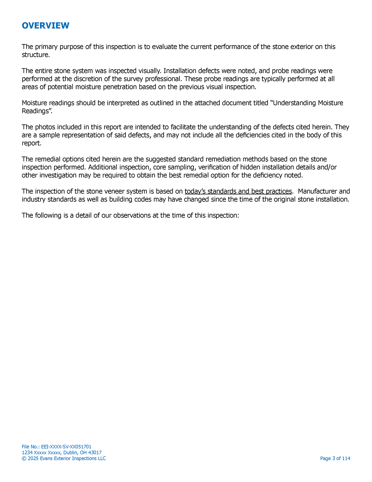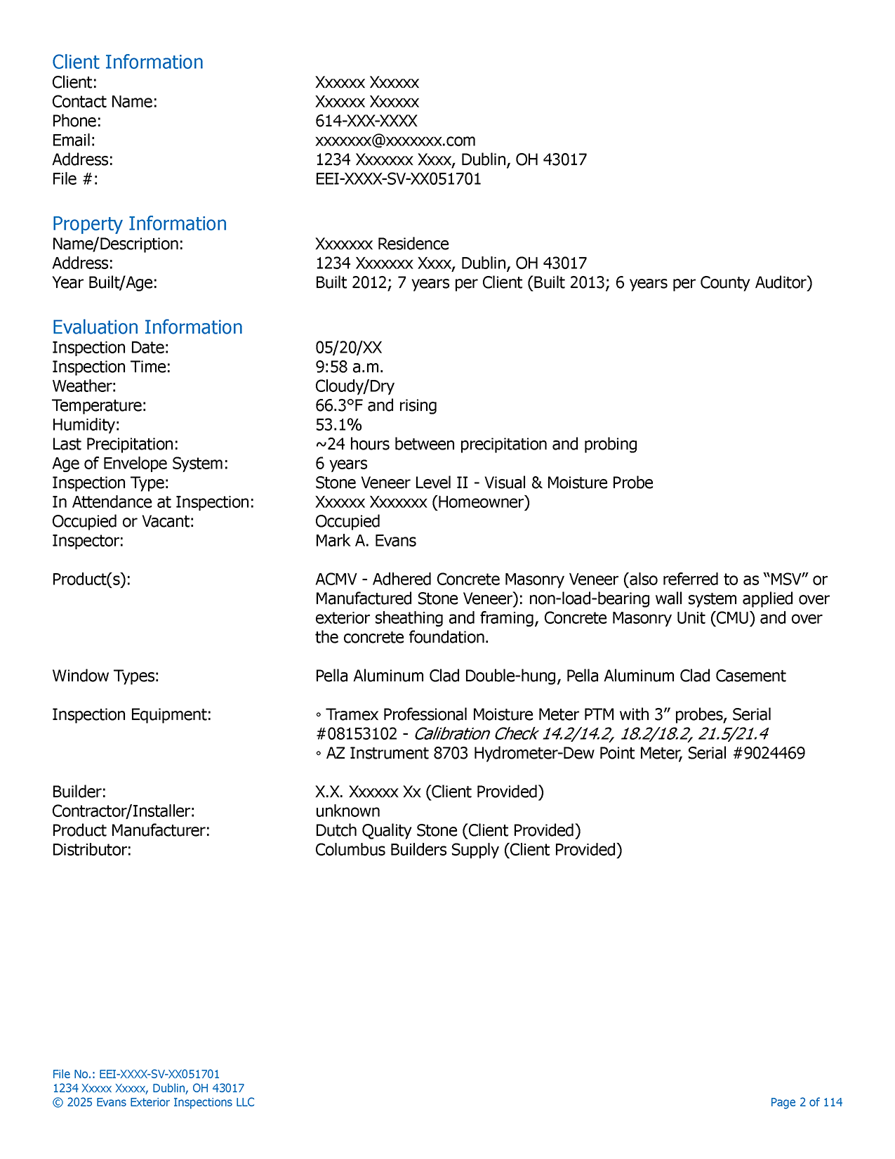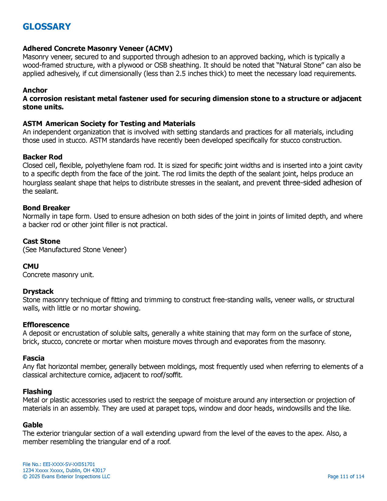 The above was taken from an actual stone veneer inspection performed for a homeowner. The name and identifying details were removed.